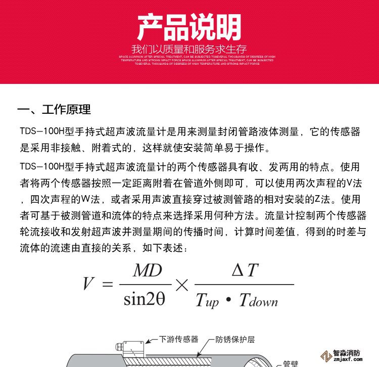 TDS-100H型手持式超聲波流量計是一種外夾、時差式超聲波液體流量計,它采用低電壓多脈沖平衡發(fā)射接收