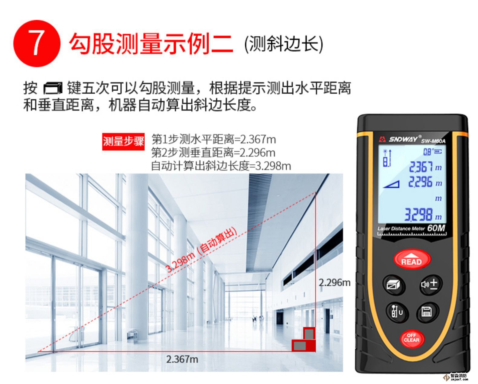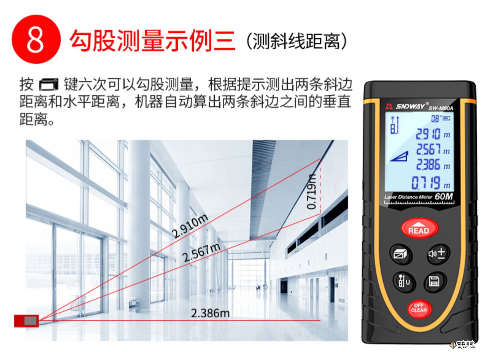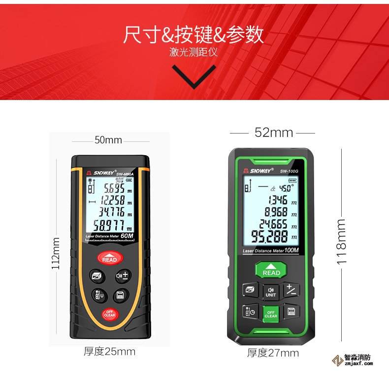 測距儀是測量距離的工具,從測距基本原理,可以分為激光距儀、超聲波距儀和紅外距儀三類。激光測距儀是目前使用最為廣泛的測距儀,是利用激光對目標的距離進行準確測定的儀器。激光測距儀在工作時向目標射出一束很細的激光,由光電元件接收目標反射的激光束,計時器測定激光束從發射到接收的時間,計算出從觀測者到目標的距離,圖4-1。消防檢測設備:WWW.XDJYQ.COM