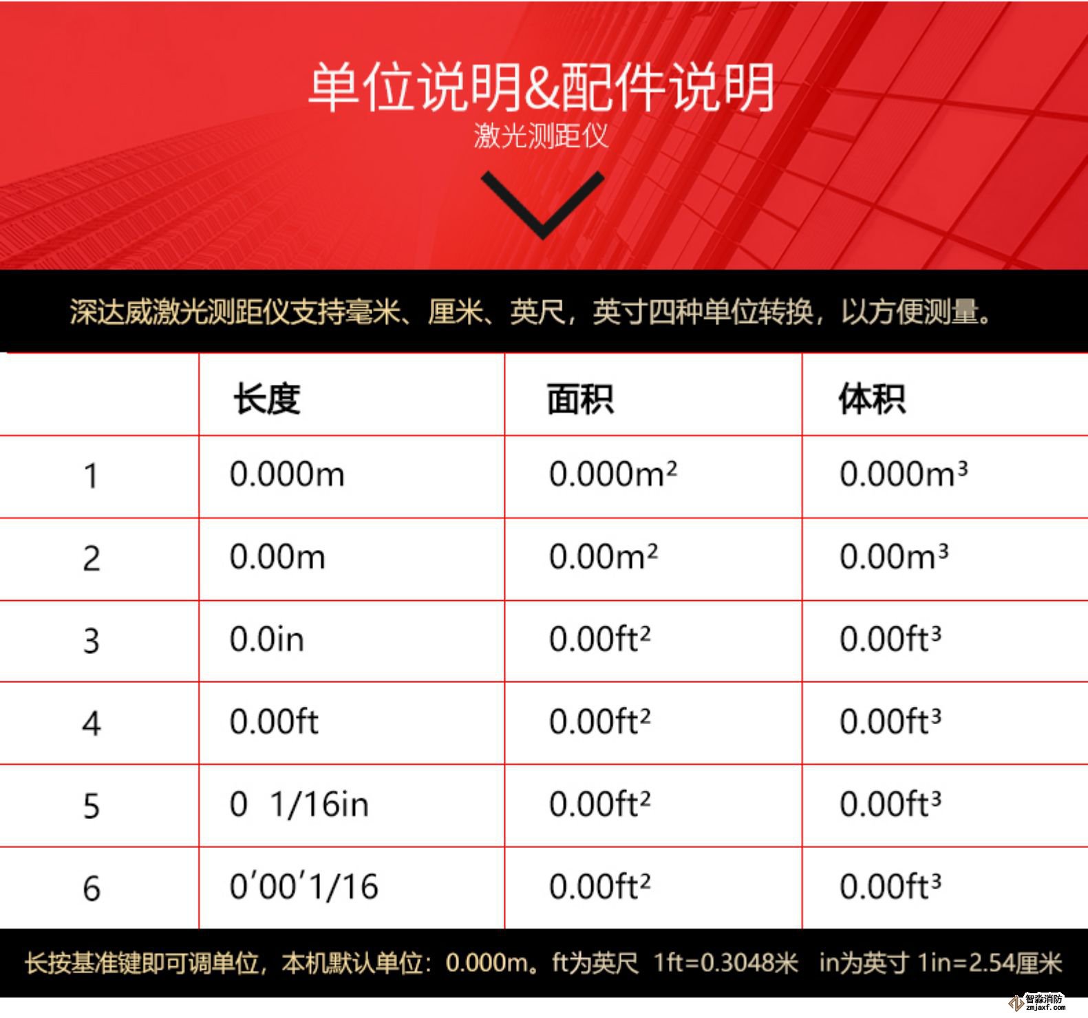 按“體積”鍵,顯示體積符號;按“測量”鍵,測量第一個距離;按“測量”鍵,測量第二個距離;按“測量”鍵,測量第三個距離;該設備在總計行顯示結果,并在第二行顯示下一個測量值分別測量的距離。