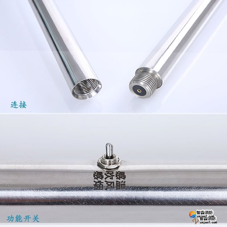 3、連接:根據(jù)高度適當(dāng)選取連接桿數(shù)量,然后將槍頭、連接桿、電池桿按順時針的方向轉(zhuǎn)連接。拆卸按相反的方向操作。