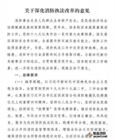 《意見》指出,深化消防執法改革的指導思想是:以習近平新時代中國特色社會主義思想為指導,全面貫徹黨的十九大和十九屆二中、三中全會精神,認真落實習近平總書記在國家綜合性消防救援隊伍授旗儀式上的重要訓詞精神,堅持以人民為中心,堅持安全發展理念,按照深化“放管服”改革決策部署,推動消防執法理念、制度、作風全方位深層次變革,打造清正廉潔、作風優良、服務為民的消防執法隊伍,構建科學合理、規范高效、公正公開的消防監督管理體系,增強全社會火災防控能力,確保消防安全形勢持續穩定向好,為經濟社會高質量發展提供安全保障。