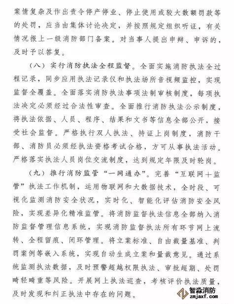 在規范消防執法行為方面,全面實施消防執法全過程記錄、法制審核、執法公示制度,嚴格限制處罰自由裁量權,嚴格執行雙人執法、持證上崗、崗位交流制度。將消防監督執法信息全部納入消防監督管理信息系統,實現消防監督執法所有環節網上流轉、全程留痕、閉環管理。