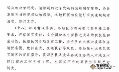 《意見》還從加強組織領導、強化協同監管、完善法律法規、抓好督促落實4個方面提出了深化消防執法改革的保障措施。