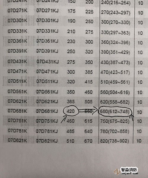 浪涌保護器對照表,只要測量出電壓在612V-748V之間,則可以判斷浪涌保護器合格