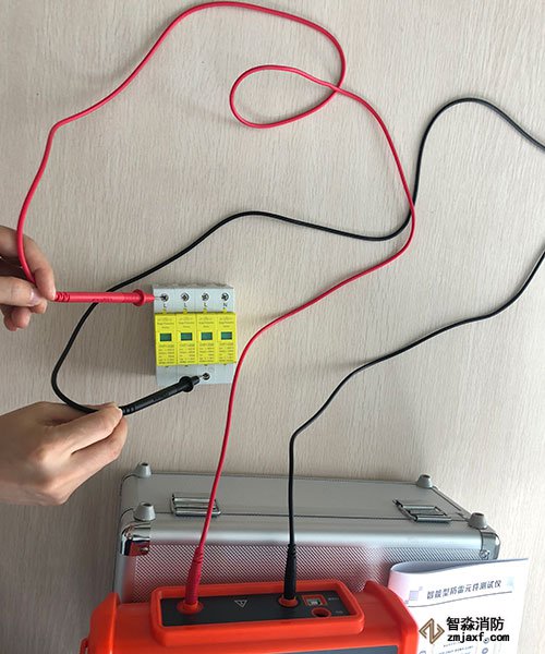 測量浪涌保護器接線圖,紅色線對應儀表紅色端,對應浪涌保護器L端,黑色線對應儀表黑色端,對應浪涌保護器接地端