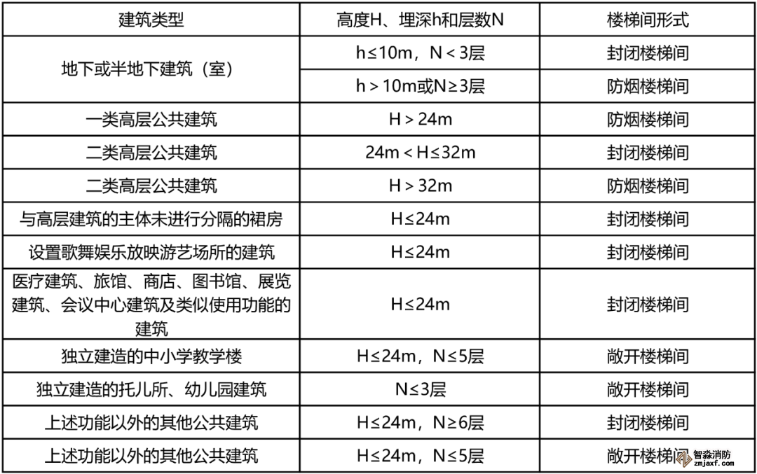 公共建筑中疏散樓梯間的形式與建筑的耐火等級高低無直接關系,與建筑樓層的建筑面積大小無關,與該建筑的數個樓層是否可以劃分為同一個防火分區也無關, 只與其實際用途或火災危險性、層數、人員密度和建筑高度等有關。